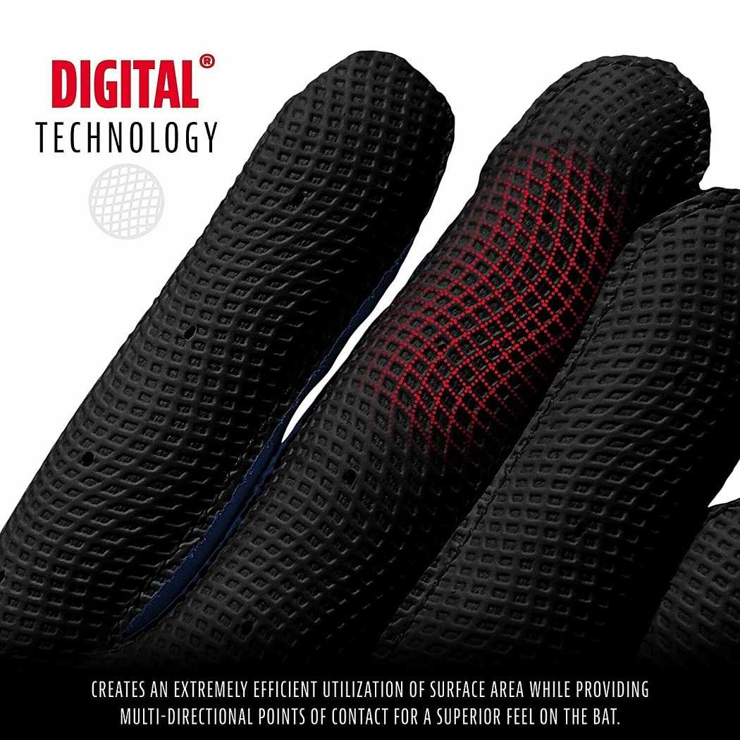 Los guantes de bateo Franklin Digitek son guantes multifuncionales de excelente flexibilidad con un ajuste atlético, sensación y apariencia. Con un parche de cuero duradero en el talón y un toque de estilo de camuflaje digital, puedes estar seguro de contar con este guante para un rendimiento en el momento del juego.
